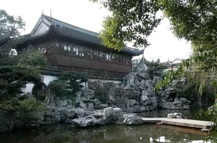 旧上海城内に有り,明の時代に造られ大少の多くの楼閣が有り池や石山等の古典庭園が楽しめる、蘇州郊外でしか採れない太湖岩・龍の壁等が有名