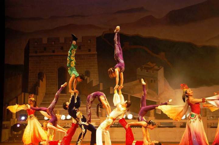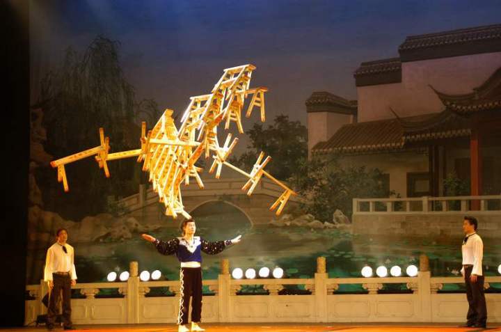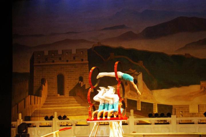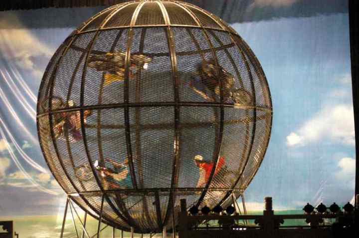 中国では一番優秀な雑技団、5台の球体内のオートバイ演技が素晴らしい