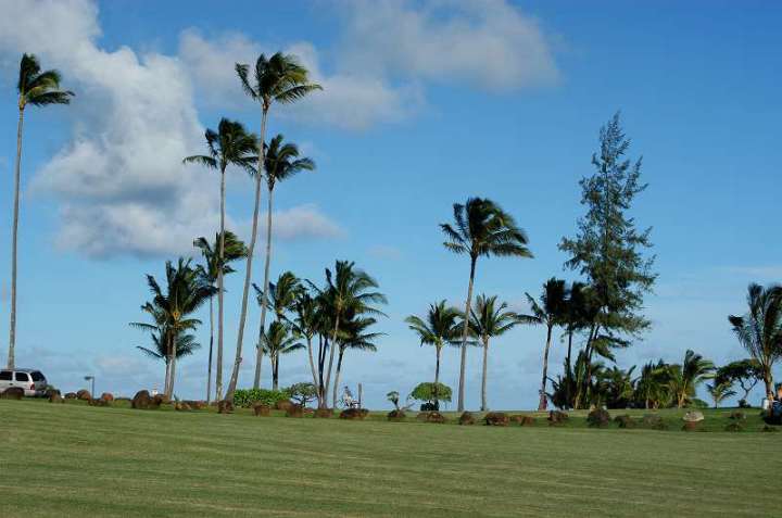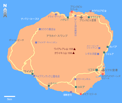 オアフ島の西110キロにありハワイ諸島で、もっとも古い時期に出来た島で年間降水量が 大変多いので樹木が育ちやすく密林が多い。