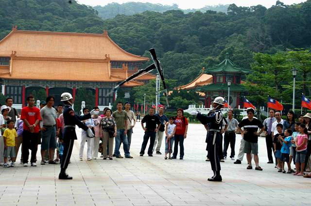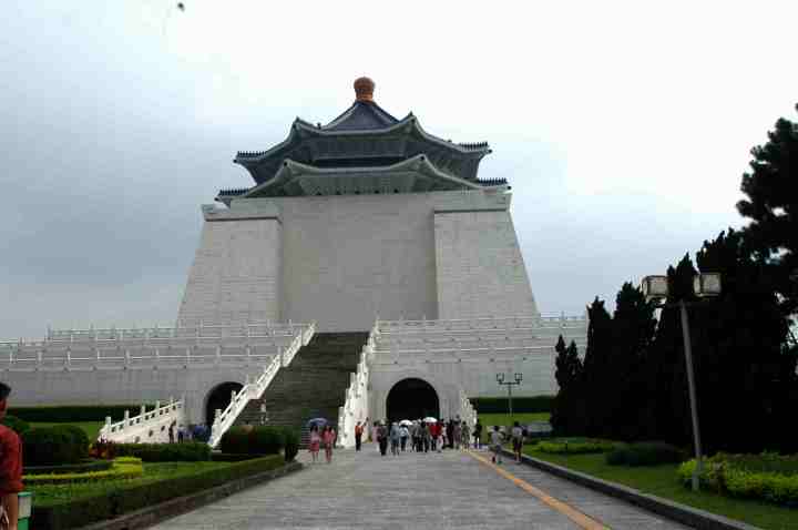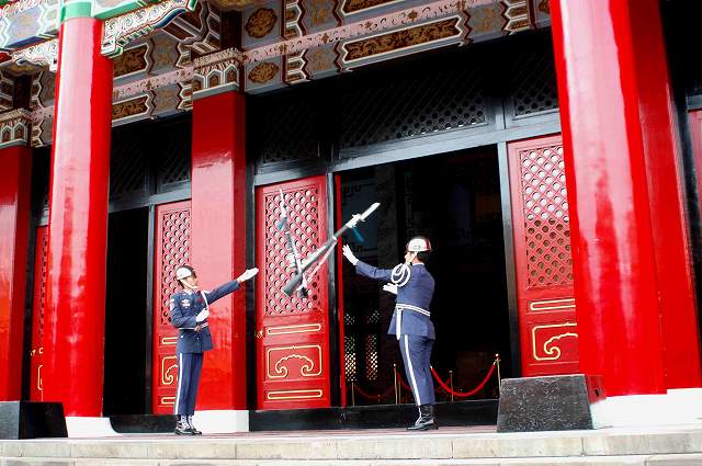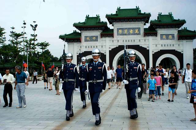 蒋介石総統をたたえて2年4ヶ月の歳月を掛けて1980年に完成した高さ70mの白色の大理石を積み上げて築かれた階段89段(死亡した年齢)内部には愛用の車・執務していた紀念ルーム、銅像などあり ここでも衛兵が交代で守っている