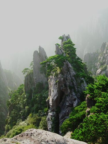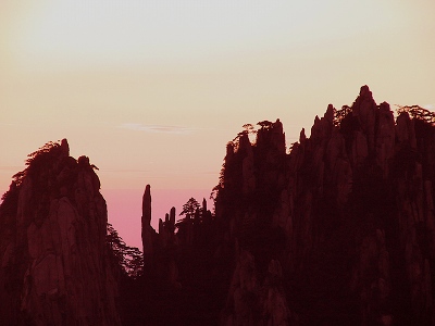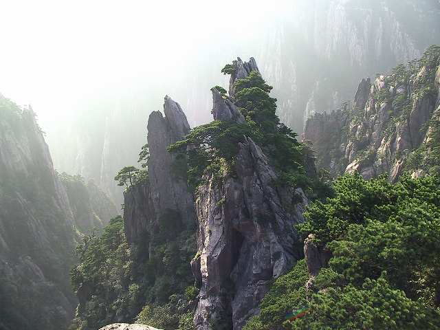 黄山で驚嘆するのは幾百の岩峰の形とそこに年月を掛けて育た松の美しさ、また年間通じて三分の二は、雨と霧で雲海が発生し、神秘的現象風景は仙境とも言われる、(黄山を見ずして雲海を語る勿れ)とも