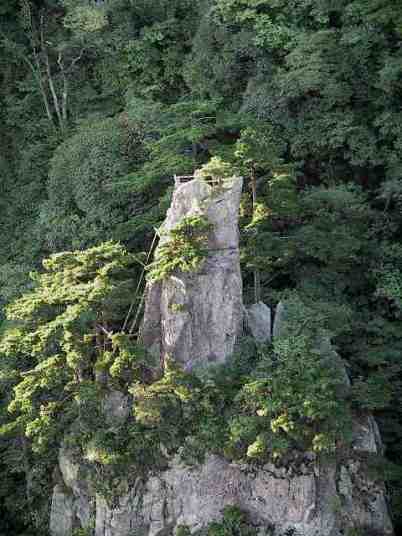 左右断崖絶璧、ウヮ!と足が震え後すだりして降りた、 遠くから見るとゾットした 右の写真のような場所かも・・・?