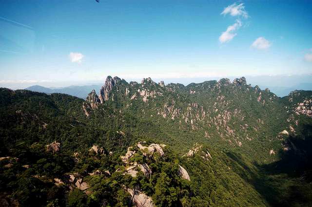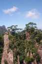 水は綺麗だが小さな池で期待した程ではなかった。ゴンドラから見る景色奇岩等は絶景であった昼食後、夢筆生花、始信峰などの名峰を観光して2時30分雲谷寺へ下山、好天、酷暑で大汗、衣換えした・・