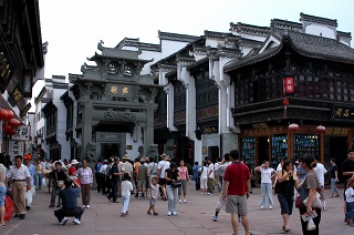 老街は南宗風の古い町並みが1,5km残っている、みやげ物、果物、薬、お茶、書道具、骨董品店