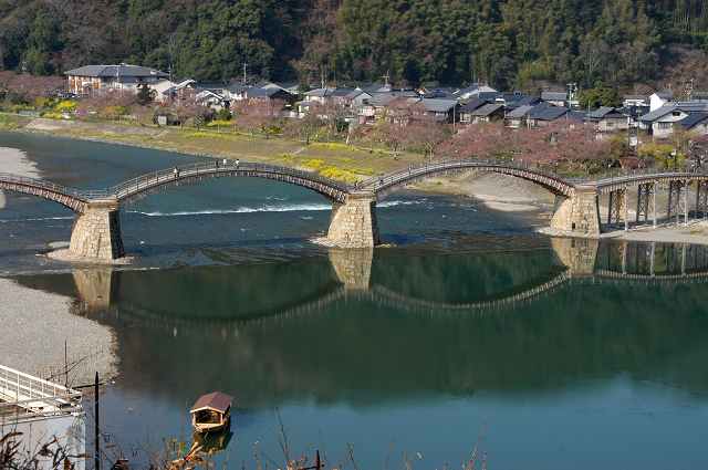 1673年岩国藩主吉川広嘉が五連木造橋をつくる1950年にキジア台風流失して三年後に再建され