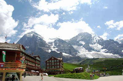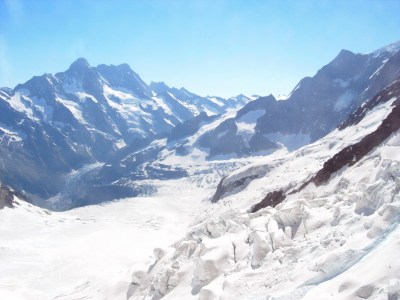 アイガー北壁が目前に見え登山電車でトンネル内2箇所の駅展望台から町並みや氷河を見ることが出来る、それからヨーロッパで一番高い駅(3454m)に着く3箇所の展望台、レストラン郵便局等もありスフィンクス展望台からの360度のパノラマの景観、眼下に見えるヨーロッパ最長アレッチ氷河等など壮絶だ。