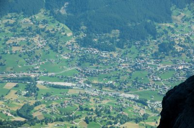アイガーバント第一駅(2864)トンネル内展望台よりグリンデルワルトの街を望む