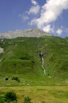 車窓からは穏やかな谷間、残雪に覆われた山々、轟々とうなりを上げて流れ落ちる 滝と急流険しく切り立った岩壁や狭い渓谷を抜け山野の傾斜地に寄り添うような木造家屋、バロック調の教会等