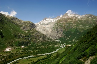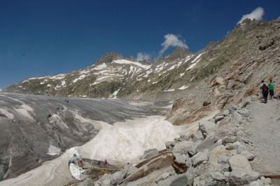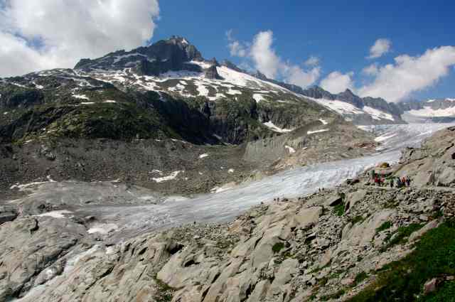 ローヌ氷河の末端(氷舌) 源流 この融水がローヌ川となり大河に成長する