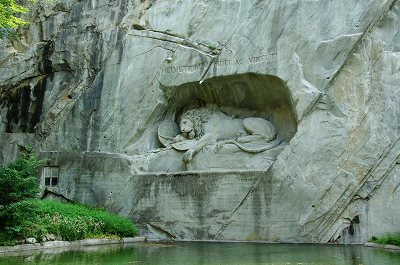ライオン記念碑は1792年フランス革命時代王家を守り勇敢な死を遂げたスイスの衛兵をしのんで自然の岩盤を削って造られた記念碑