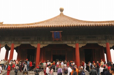 この門を入って故宮、皇帝の宮城 昔は紫禁城と呼ばれ政治の中枢となっていた72万平方mの広大な敷地に数多くの建物がならび国家の重要な政治や儀式の場となった、北側は皇帝、皇后の生活の場として使用された。