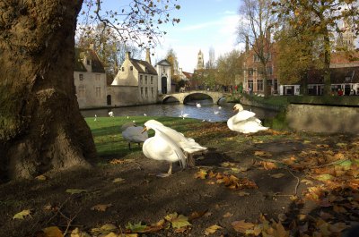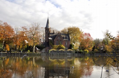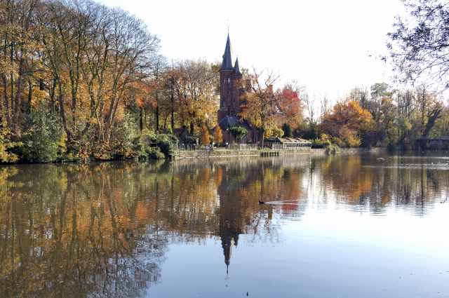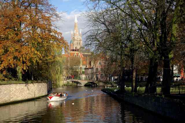黄葉が水面に映って素晴らしい 数百年忘れられていたが小説「死都ブルージュ」で一躍有名になり観光客も多くなったそうです