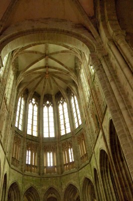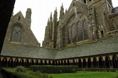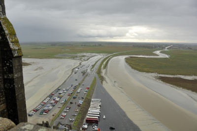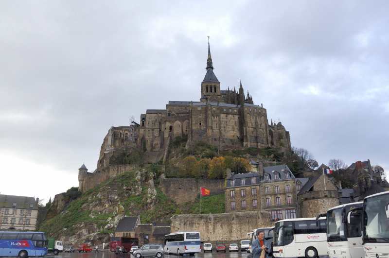 陸から2キロ離れた小島に建つ壮大な修道院 現在は堤防で車で行ける