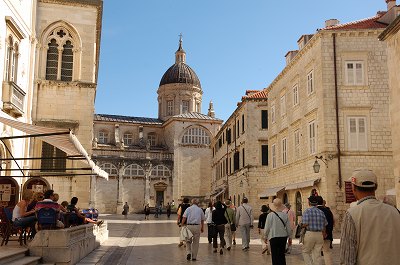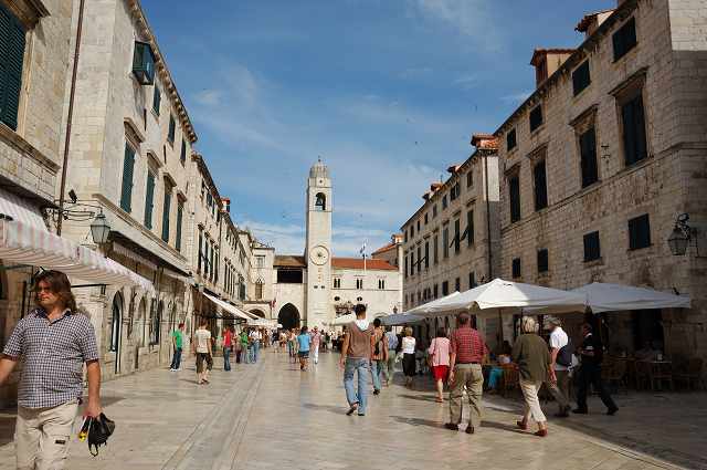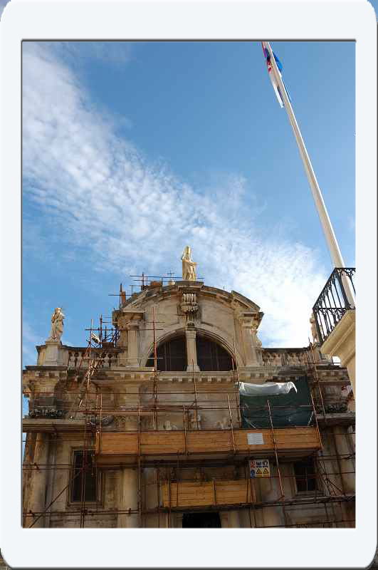 | クロアチアの最南端のドブロヴニク(旧市街地)は、13世紀以降に地中海の交易拠点として栄えた1667年 大地震で大きな被害を受け又1991年のユーゴスラビア内戦中破壊されましたが美しいゴシック様式、ルネッサンス様式、バロック様式の教会 僧院、宮殿、噴水施設等市民の「自由と自治」の精神と共に大切に守って保存されている (現在も保存、復元工事が行われていた。) |