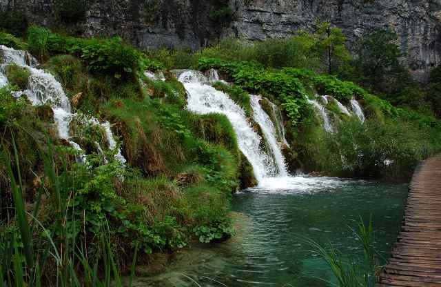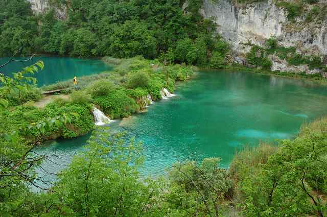 | エメラルドグリーンの湖が16、大少90、を越える滝が数百メートルの高低差で形成されている。プリトヴィッツェ湖群国立公園は日本ではかなりマイナーかもしれないが、世界遺産にも登録されている、非常に美しい湖と滝がある国立公園だ。、1990年代の内戦の際に危機にさらされたが、再び整備されて毎年多くの人々がその美しい湖を一目見ようとやってきている上流地域は繊細な滝が足下を流れ、それが小さな湖にそそがれる。苔むした岩の間からしみ出す清流、木の間を縫うように流れる清流。それらはやがて一つの流れとなり、川となって、下流の湖にそそがれる。上流の繊細な流れと、下流のダイナミックな流れ。それらは全く異なった姿をしていて飽きることがない。生憎小雨まじりの中約3時間、トレッキングして園内のホテルに宿泊した、翌