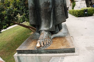 | ディオクレティアヌス像と足この足を さすると幸せに成ると言われているので 、足先が輝いている |