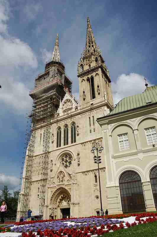 聖母被昇天教会 ザグレブのシンボル的存在高さ105mの尖塔、元々ロマネスク様式であったが