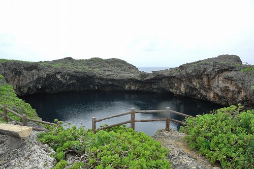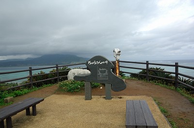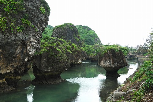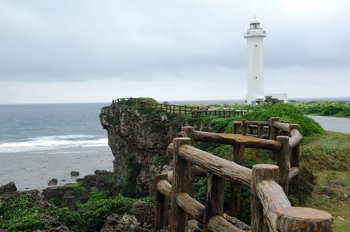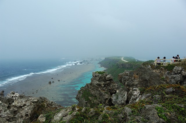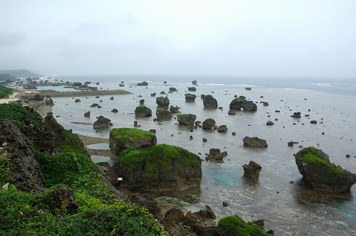 太平洋と東シナ海に面して珊瑚礁の石灰岩から成り立っている、日本都市公園100選やくにの史跡名勝天然記念物に指定されている。雨の中撮影で視界が悪い。
