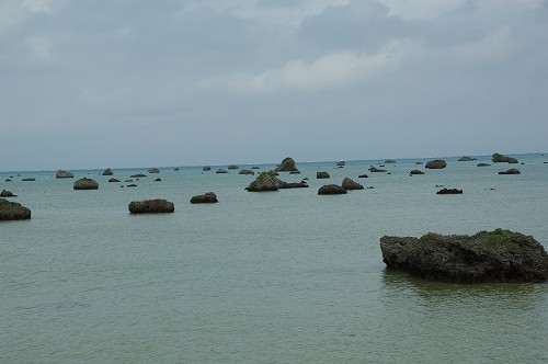 遠浅の静かな海に転がる大岩が特異な風景を作り出しています。岩のひとつひとつには名前が付けられ、平成8年には「日本の渚百選」にも選ばれました。この大小の岩礁は1771年の明和の大津波で打ち上げられたものと云われ、島には過去二千年の間に大津波が3回来たと云われています