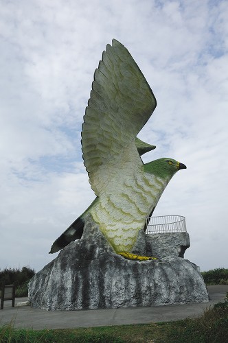 「フナウサギバナタ」とは「船を見送る岬」という島の方言でその昔、沖縄本島などに旅立つ家族や親戚の無事を祈り、船を見送った場所です。島からの旅立ちに多くの人がいろんな思いで手を振りました。現在では伊良部町の町鳥・シンボルであるサシバを形どった展望台が建ち、勇ましく海を眺めます。遠くから見るとサシバが今にも飛び立とうとしているかのようです。