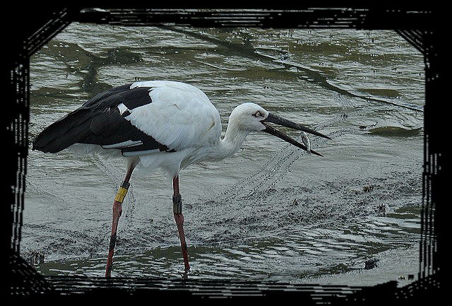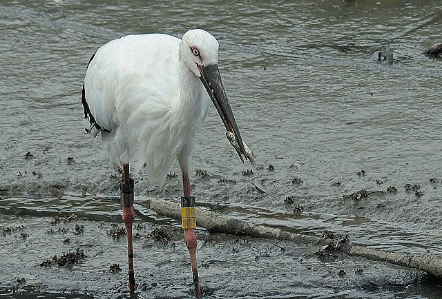 羽に黄色のペイントがマーキングされ自然らしくないが・・・