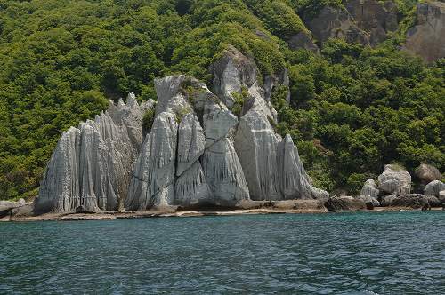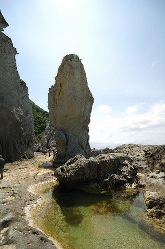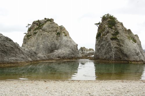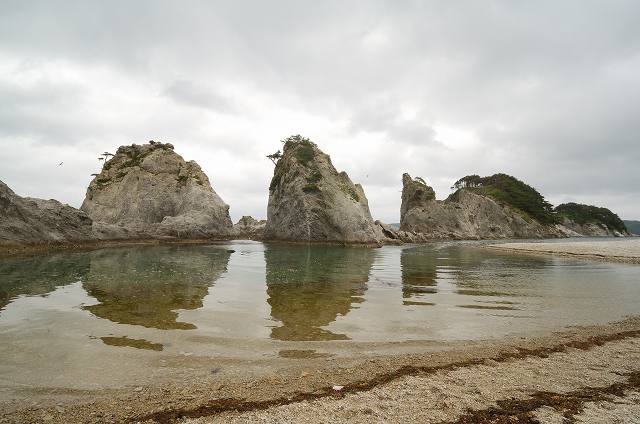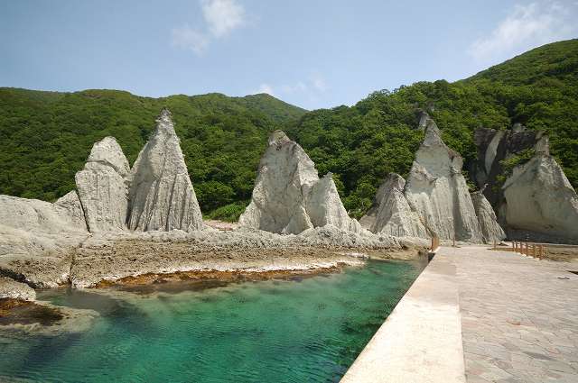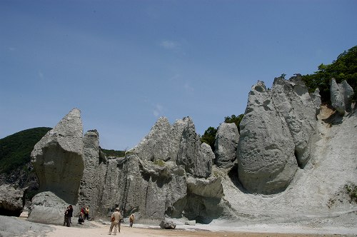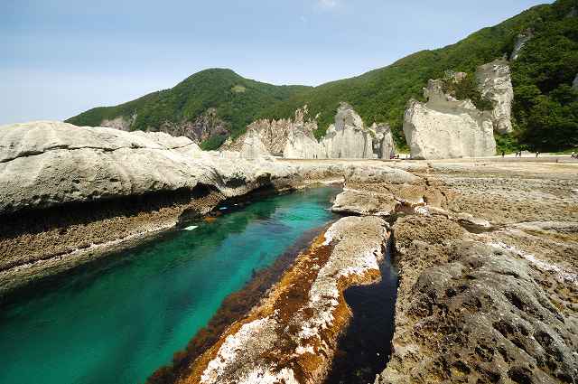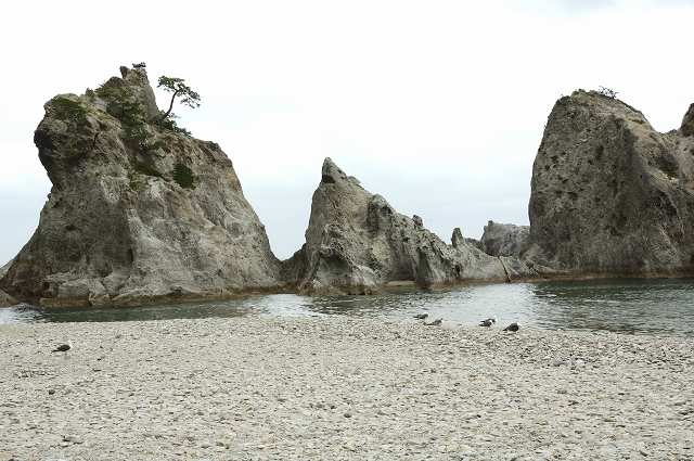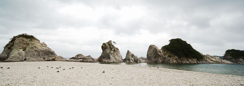 陸中海岸国立公園の中心をなす浄土ヶ浜は鋭くとがった白い石英粗面岩が林立し、一つ一つ違った表情を見せて海岸を彩ります。松の緑と岩肌の白、海の群青とのコントラストはまさに絶景だ