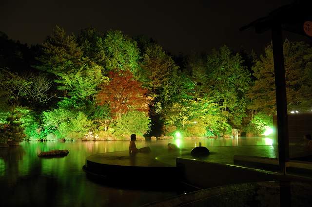 水に浮かぶ露天風呂、青森ヒバの香に癒される
