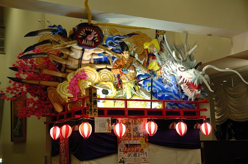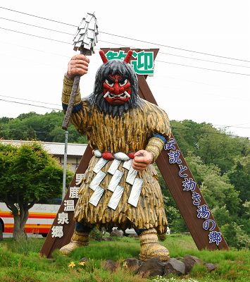 男鹿温泉郷入り口で「悪い子はいねが~のなまはげ」が歓迎