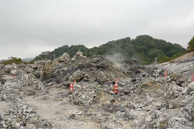 日本三大霊山 の一つに数えられ硫黄臭荒涼とした風景はその名に恥じない