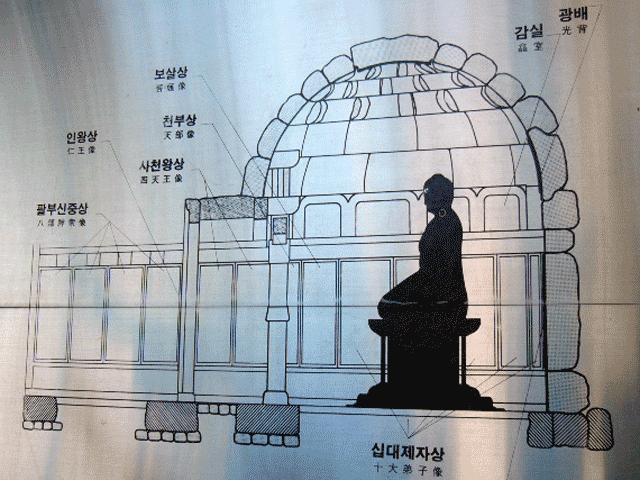751年に新羅35代の景徳王時代の宰相、金大城が両親のために創建した仏教技術史上最高の傑作といわれている釈迦如来座像が光を放っている