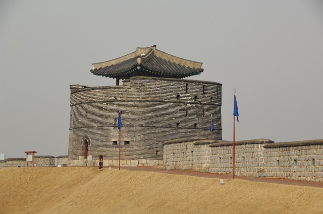 朝鮮王朝第22代の正祖大王が漢陽(ソウル)から遷都しようと1794年に築いた華城等多くの文化財が残されている、4つの楼門、や2つのアーチ型の水門のある華虹門、市内が一望出来る西奨台等建築美と風景が調和して世界文化遺産に登録されている。