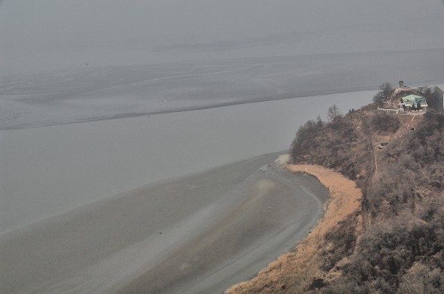 訪れた日は生憎、霧が舞い対岸の北朝鮮がかすかに見えるだけでした