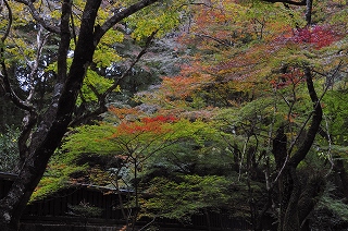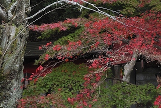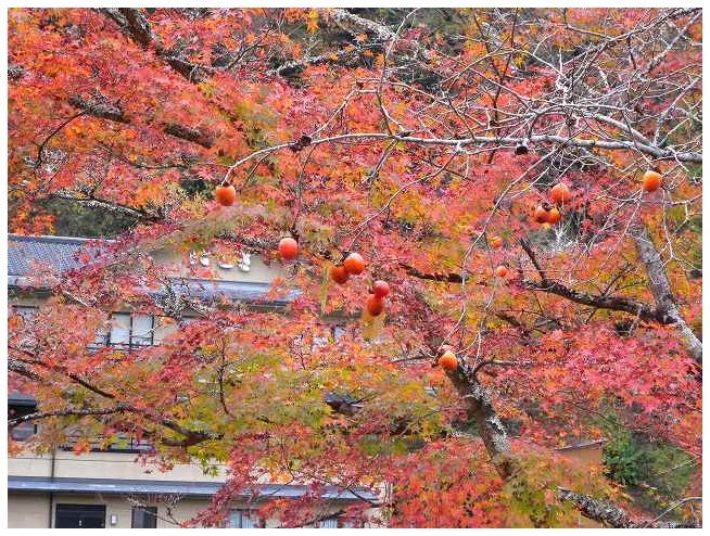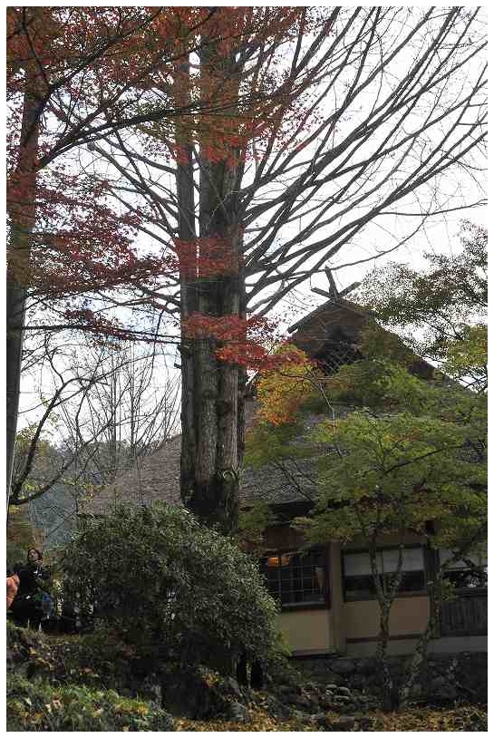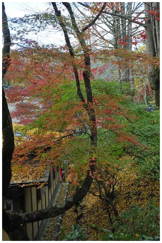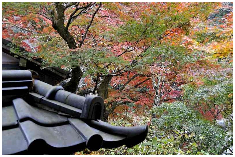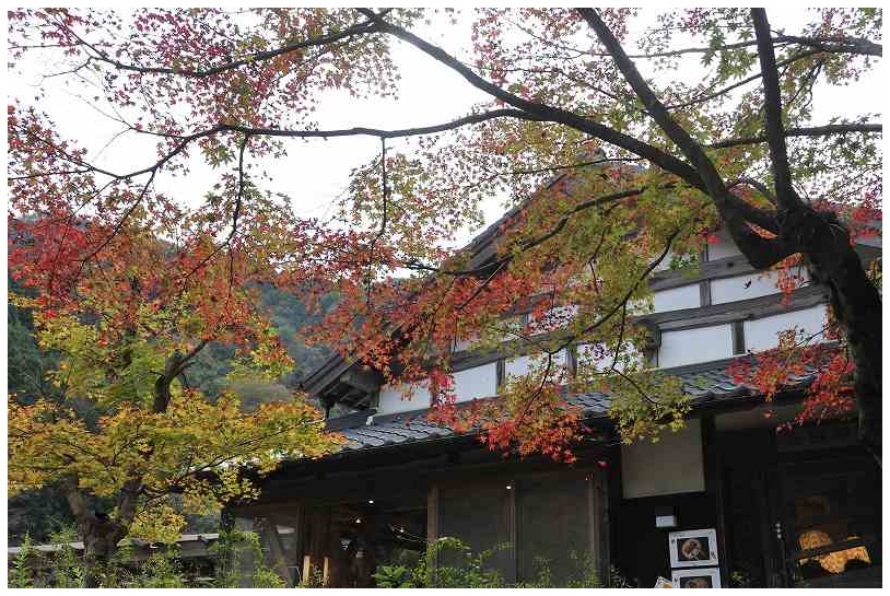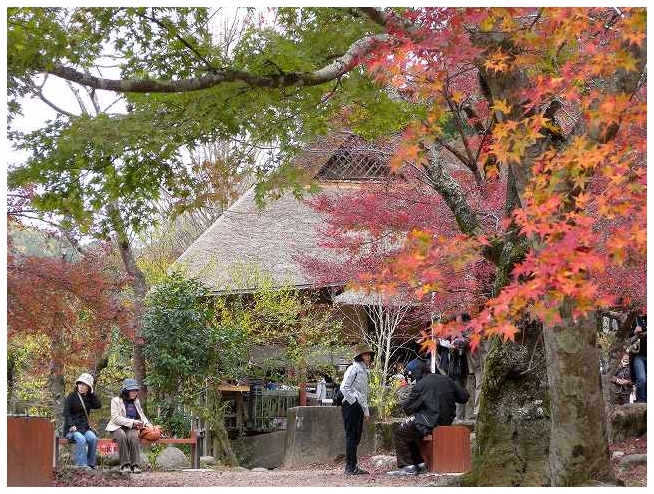 瓦屋根・・茅葺屋根と紅葉が調和して綺麗だ・・・