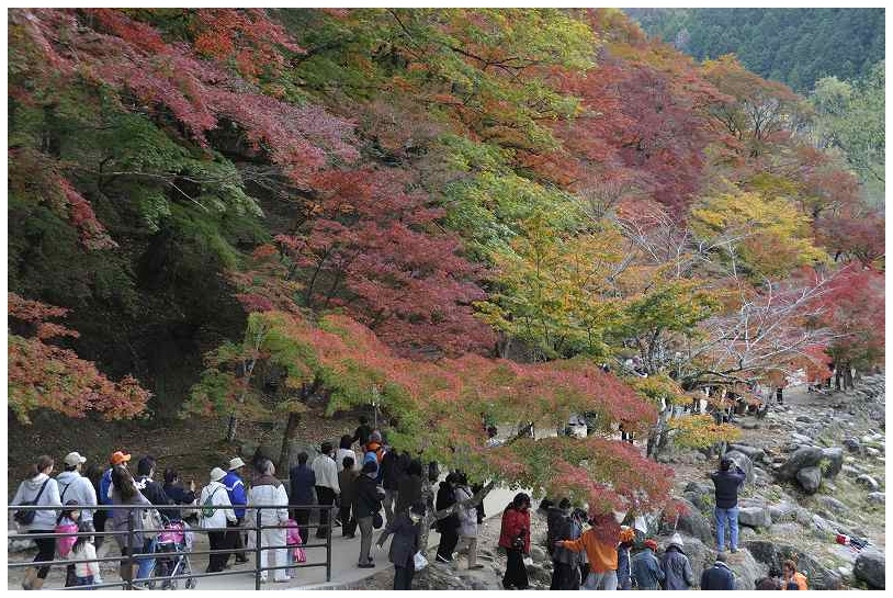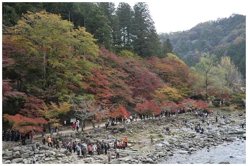 香嵐渓のもみじは、約370年前香積寺の三栄和尚が植えたのが始まりで、大正時代には、地元の人々の手