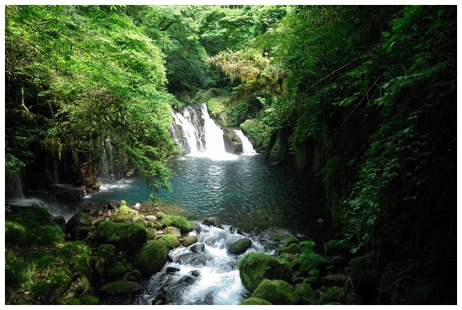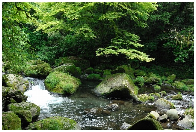 阿蘇の伏流水で新緑の渓谷美が素晴らしい