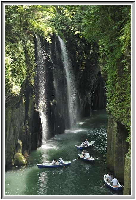 日本の滝100選に選定された名瀑。天孫降臨の折り天村雲命という神様が、水種をこの地に移された天真名井から地下水となってこの滝に湧水しているといわれ、高千穂峡の碧水に白蛇を思わせる数条の飛瀑は素晴らしい