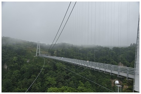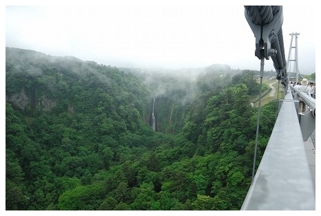 橋の上からは日本の滝百選に選ばれた震動の滝等鳴子川渓谷の雄大な景色が満喫できる
