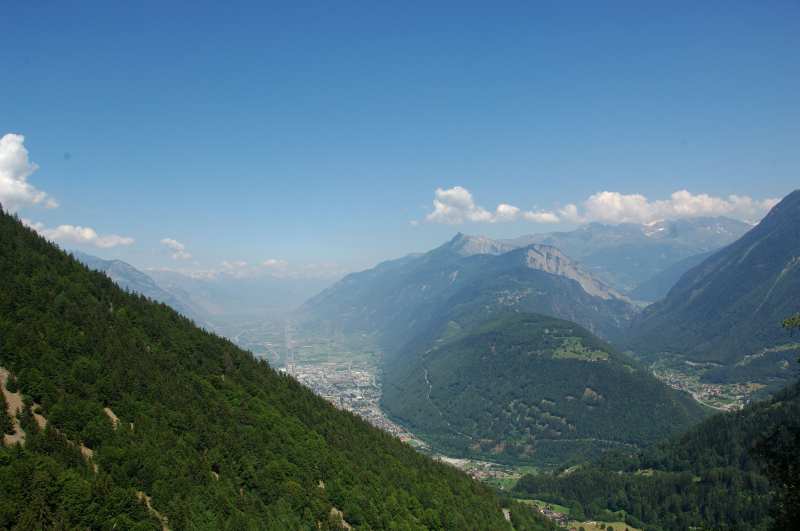ティーシュへ行く途中の峠より シオンの街を俯瞰 バスを止めてくれたが谷間に霧がかっかっている