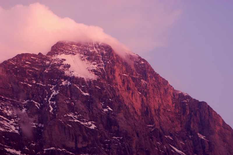 夕陽に染まるアイガー北壁
