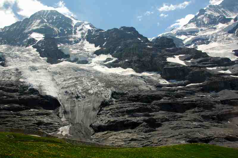 そこから見る氷河も迫力があるが温暖化の影響か氷河は相当後退して夏でもあるので汚れているように見える。