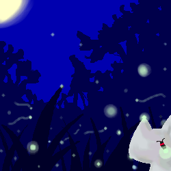この夏に蛍の絵を何枚か描きました。 これはその中の一枚。 |