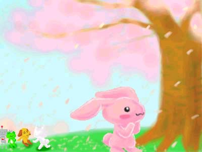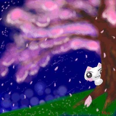 | 夜桜大好きです。 コロンのかくれんぼという感じで描いてみました。 |