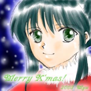 | クリスマス配布用に描きました。 私にしては髪の毛も目も緑系はめずらしいです。 |