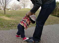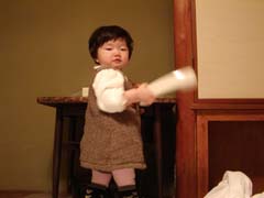 おとうさんといっしょにあんよのけいこ。 いっちに、いっちに。 えい。ふんじゃえ〜。 |