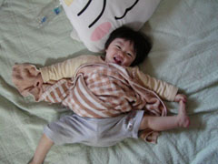 お昼寝しましょう。 まだまだねんねしないもん。 |