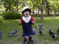 近所の公園に行ったよ。 鳩さんがいっぱい。 楽しいな。 |