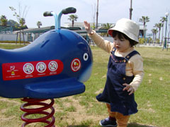Myuの実家の近くに、新しい公園ができました。 早速行ってみました。 どの遊具も新しくてとてもきれい。 くじらさん、こんにちは。 |