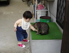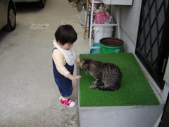 にゃんことあそぶよ。 まだ子どもどうしだからか、 なぜかとても仲良しなふたりです。 |