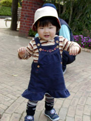 歩き始めたばかりのゆん。 広くてきれいな園内を、一生懸命歩いてみます。 |