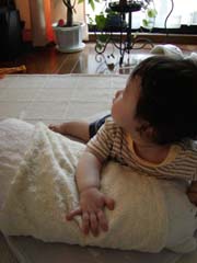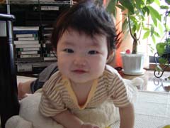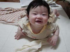 | 匍匐前進も上手になってきました。 でもカメラを見ると突進してくるので、余り上手く撮れません。 カメラ好きなのかなあ? |